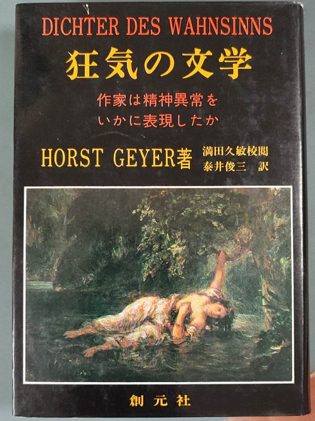 { "书名": "狂气の文学", "副标题": "作家は精神異常をいかに表現したか", "原书名": "DICHTER DES WAHNSINNS", "作者": "Horst Geyer", "译者": "泰井俊三", "校阅": "满田久敏", "出版社": "创元社", "出版地": "日本大阪市北区堀上町45", "定价": "1200日元", "出版日期": "1973-08-10", "版次": "第1版第1刷", "发行人": "矢部文治", "印刷者": "大日本印刷株式会社", "联系电话": "大阪 363-2531(代表)", "东京营业所": "新宿区山吹町77(电话269-1051) 邮便番号162", "图书编号": "1098-480801-4202" }