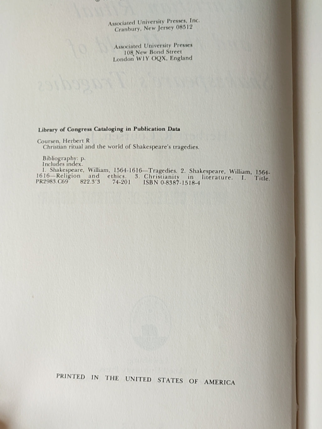 莎士比亚作品系列 - Christian Ritual and the World of Shakespeare's Tragedies