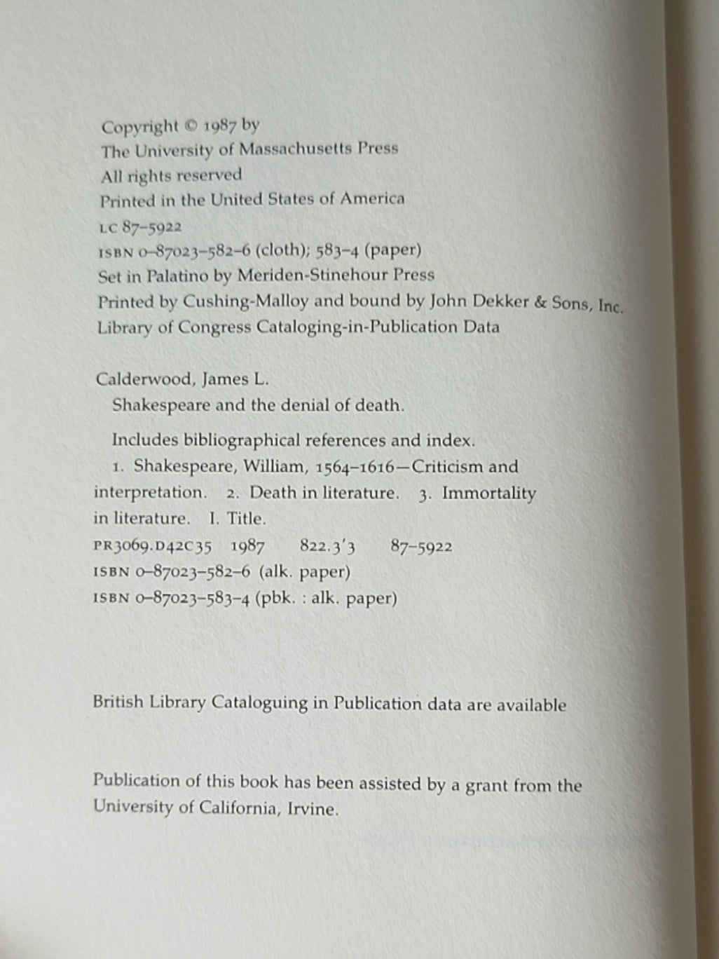 莎士比亚作品系列 - Shakespeare and the Denial of Death。这是一本精选的英文文学经典作品,适合文学爱好者和学者研究。